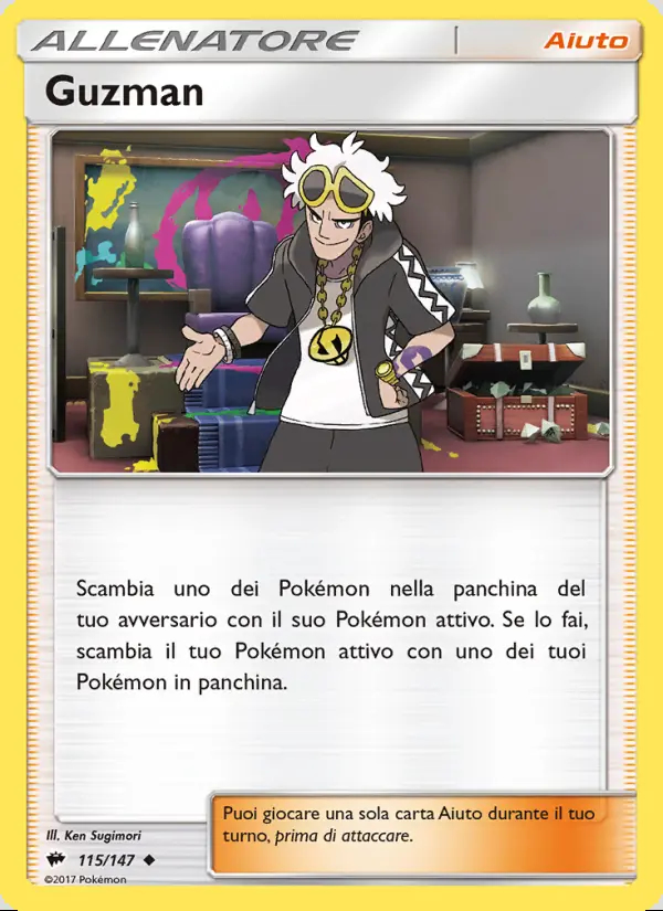 Scambia uno dei Pokémon nella panchina del tuo avversario con il suo Pokémon attivo. Se lo fai, scambia il tuo Pokémon attivo con uno dei tuoi Pokémon in panchina.