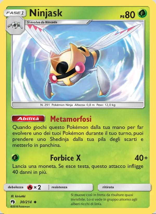 Ability: Quando giochi questo Pokémon dalla tua mano per far evolvere uno dei tuoi Pokémon durante il tuo turno, puoi prendere uno Shedinja dalla tua pila degli scarti e metterlo in panchina.