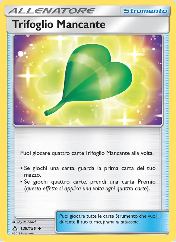 Puoi giocare quattro carte Trifoglio Mancante alla volta. • Se giochi una carta, guarda la prima carta del tuo mazzo. • Se giochi quattro carte, prendi una carta Premio (questo effetto si applica una volta ogni quattro carte).