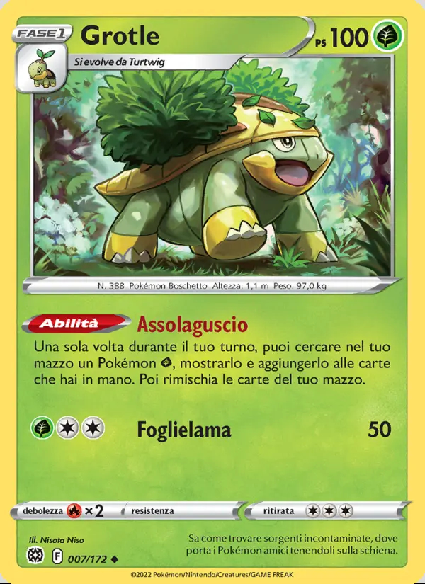 Ability: Una sola volta durante il tuo turno, puoi cercare nel tuo mazzo un Pokémon Grass, mostrarlo e aggiungerlo alle carte che hai in mano. Poi rimischia le carte del tuo mazzo.