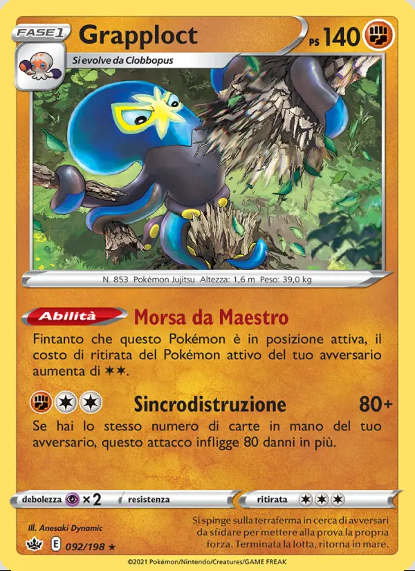 Ability: Fintanto che questo Pokémon è in posizione attiva, il costo di ritirata del Pokémon attivo del tuo avversario aumenta di Colorless Colorless.