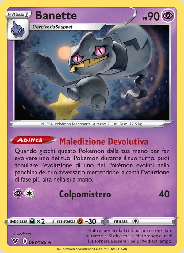 Ability: Quando giochi questo Pokémon dalla tua mano per far evolvere uno dei tuoi Pokémon durante il tuo turno, puoi annullare l'evoluzione di uno dei Pokémon evoluti nella panchina del tuo avversario mettendone la carta Evoluzione di fase più alta nella sua mano.