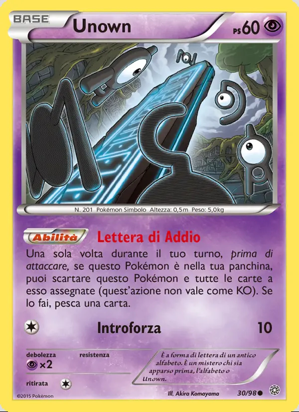 Ability: Una sola volta durante il tuo turno, prima di attaccare, se questo Pokémon è nella tua panchina, puoi scartare questo Pokémon e tutte le carte a esso assegnate (quest'azione non vale come KO). Se lo fai, pesca una carta.
